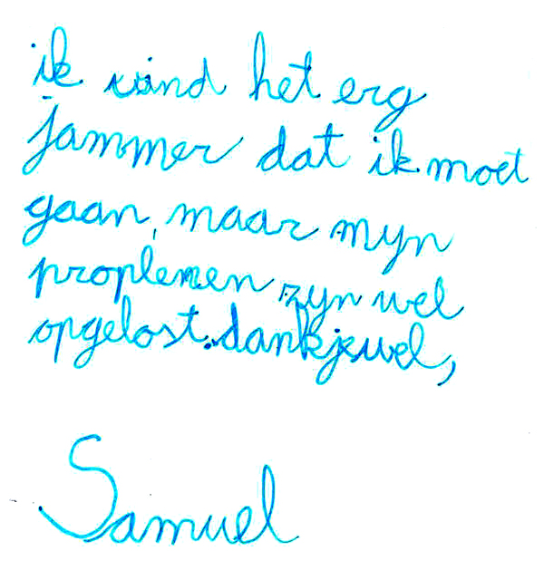 Mijn lieve zoon had in groep 6 moeite met kinderen/mensen om hem heen die hem niet begrepen en hem in zijn ogen onrechtvaardig behandelden. Zijn frustratie uitte hij uiteindelijk met zijn vuisten. Toen kwamen we bij jou. Hij vond die sessies zo fijn! Hij is ons nog altijd dankbaar voor jouw wijze lessen. Het gaat nu heel goed met hem. Hij is in juli met een mooi VWO diploma op zak vertrokken naar Amerika om daar te studeren. Wij hebben hem zondag gesproken en hij heeft het heel erg naar zijn zin. Nieuwe situaties en mensen zijn niet langer meer een bedreiging maar een spannende uitdaging en hij kijkt met veel optimisme naar de toekomst. Ik wil je nog eens heel hartelijk danken. Jij hebt hem en ons inzicht en vaardigheden meegegeven waar we nog steeds ons voordeel mee doen.